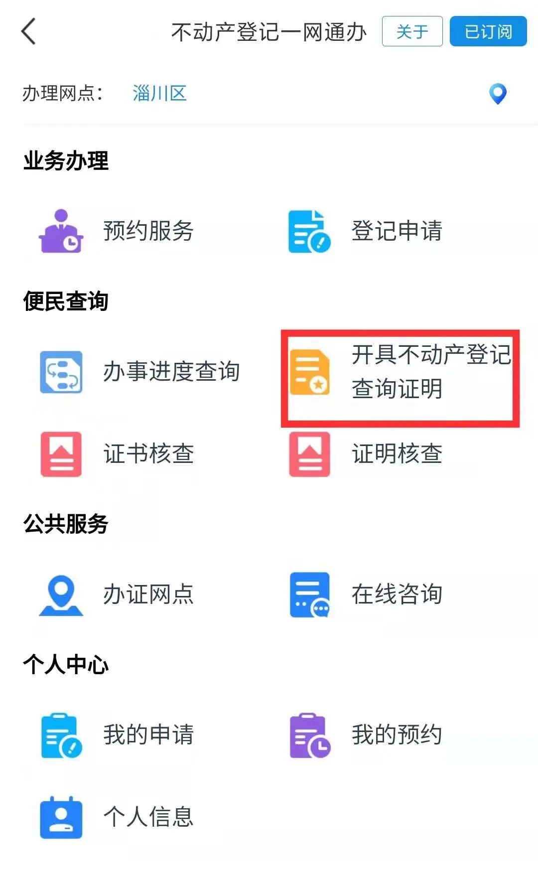 2.點擊“開具不動產登記查詢證明”即可開始辦理;