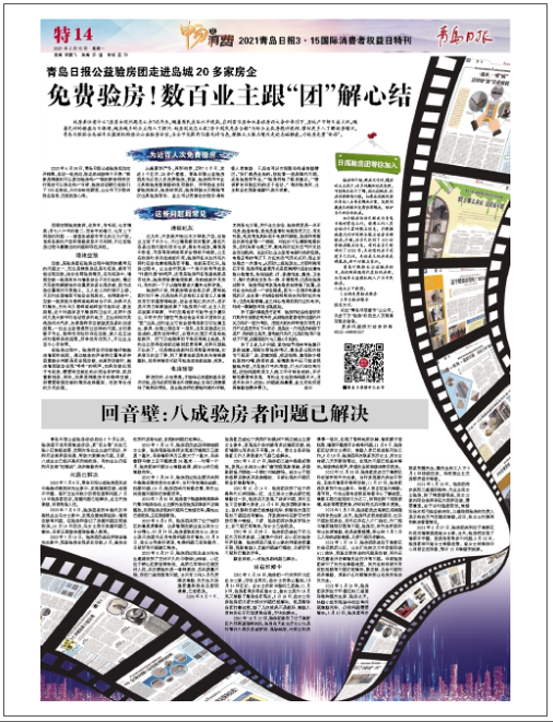 從盛夏到嚴冬,再到初春,歷時8個月,走進8個區市、20多個樓盤,青島日報公益驗房團共為近百人次免費驗房。現場,驗房師用專業工具勘驗房屋裝修的各項指標,并幫助業主科普驗房知識,驗房結束后,驗房師就當天勘驗情況出具驗房報告,業主可以憑借這份報告請維修人員維修,日后也可以對照報告檢查維修情況?!拔覀兌际菢I余的,就能看一些表面的問題,還是驗房師專業?!薄膀灧繋熃o了很多建議。”“感謝青島日報組織的這個活動?!泵看悟灧亢?,業主都會在現場或群中表示謝意。
