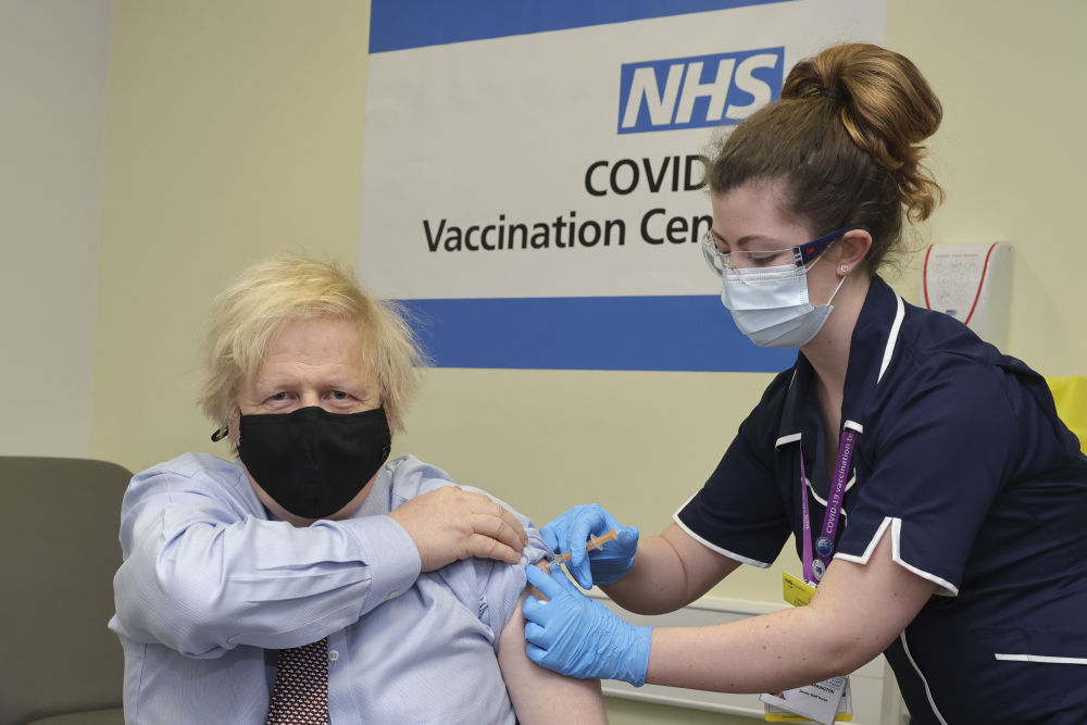 約翰遜19日在倫敦圣托馬斯醫院接種第一劑阿斯利康疫苗,說“真的一點感覺都沒有”,呼吁民眾盡快接種。