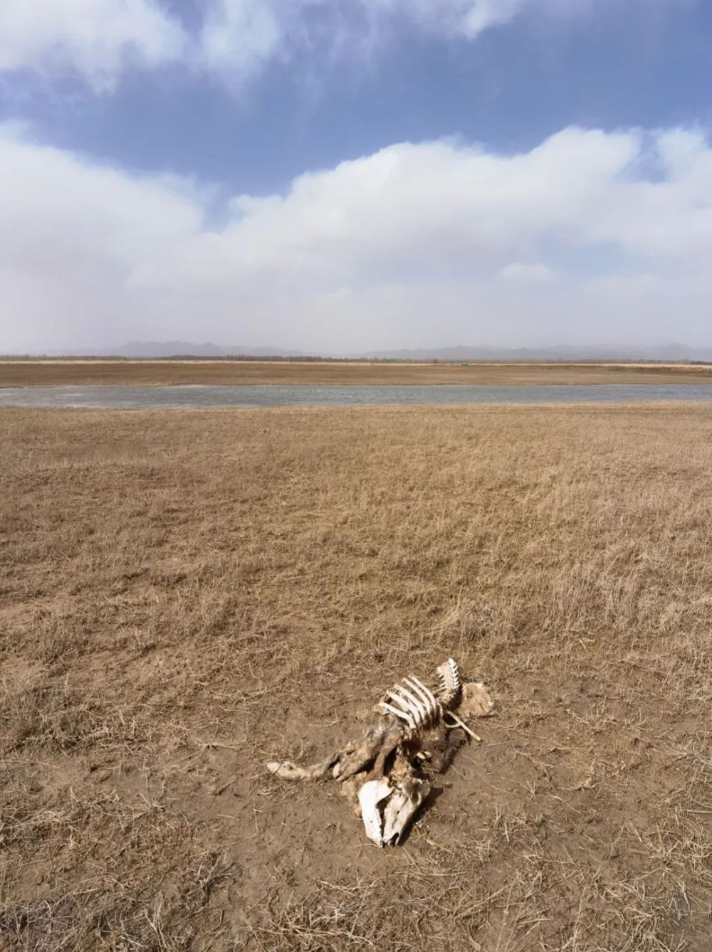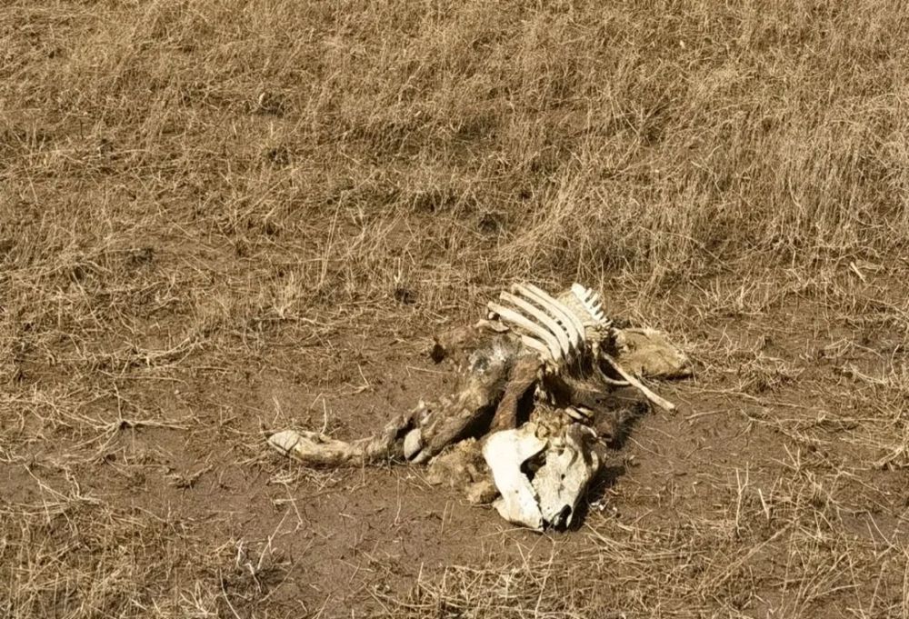 這是黃河內蒙古達拉特旗段“國堤”內側一頭已風化成骨架的死豬。半月談記者 賈立君攝
