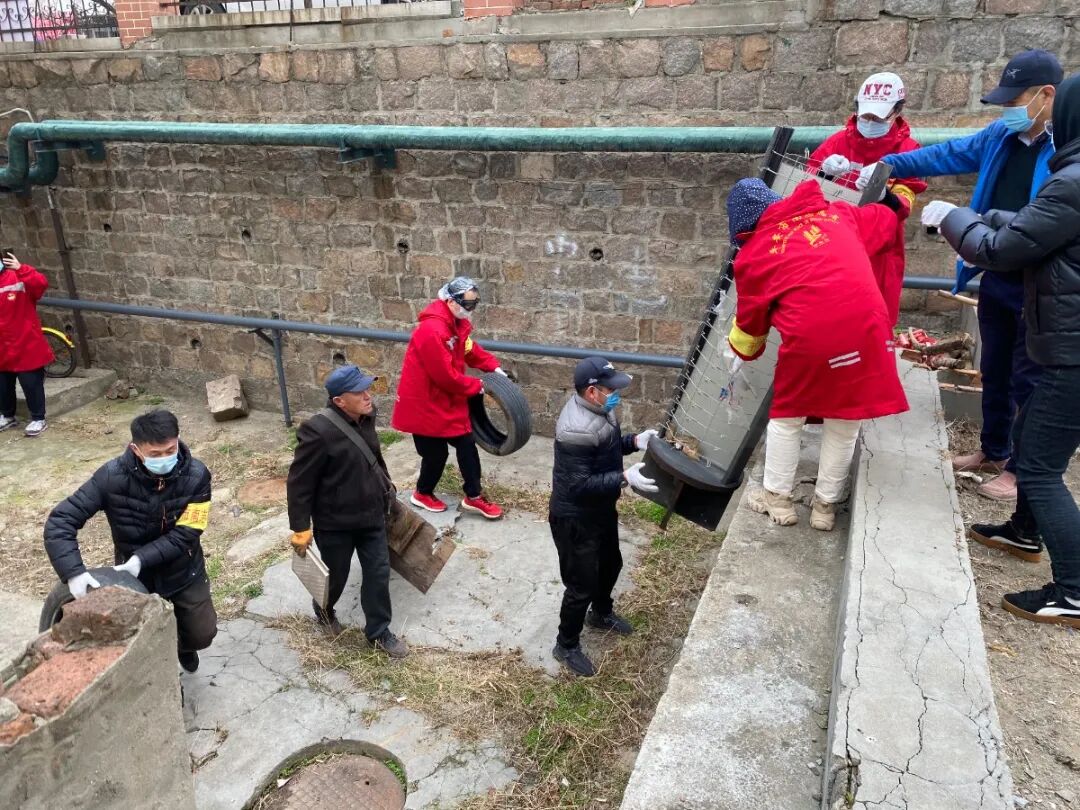 鮮紅的黨旗指引方向,黨員干部模范帶頭、沖鋒在前,帶領全體人員清理衛生死角、亂堆亂放,清除亂圈亂占、垃圾雜物,大家不怕臟、苦、累,發揚苦干實干的老黃牛精神,鐵锨、掃帚、耙子、推車齊上陣,石頭磚瓦上手搬、齊手抬,鉆進綠化帶里撿拾垃圾;小朋友也來助陣,天真稚氣的小臉上寫滿認真和篤定;大家不顧滿身泥土、漫天灰塵,拿出黃牛耕地的干勁兒,一派熱火朝天的勞動景象。