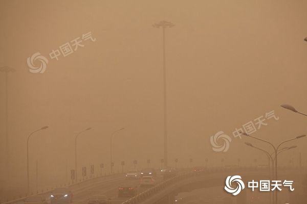 3月15日,北京遭遇沙塵天氣,天空昏黃土腥味濃。(圖/中國天氣網王曉)