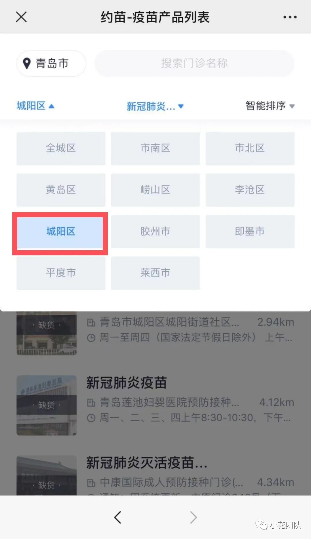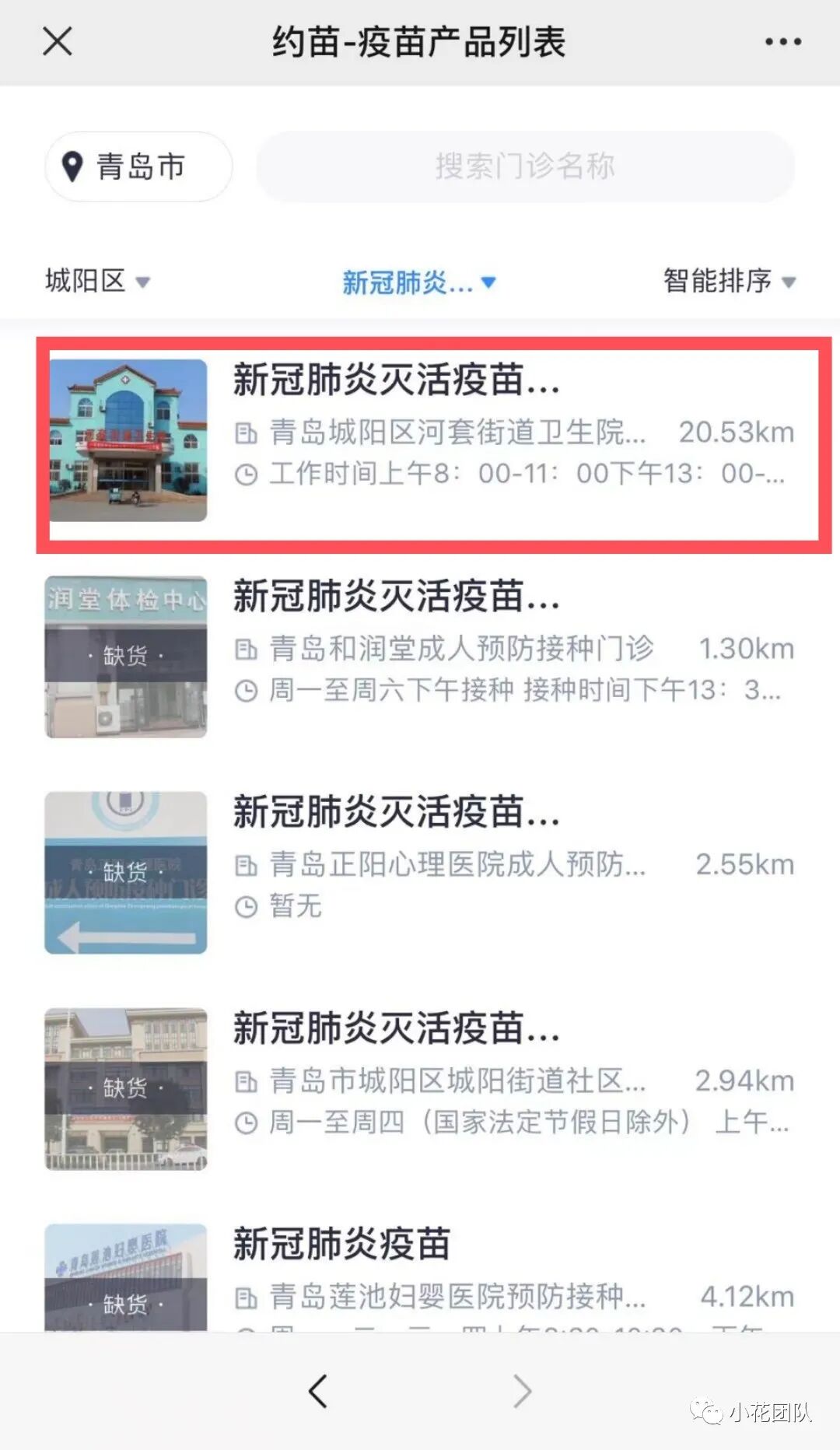 選擇“城陽區”后,選擇想要預約的接種門診;