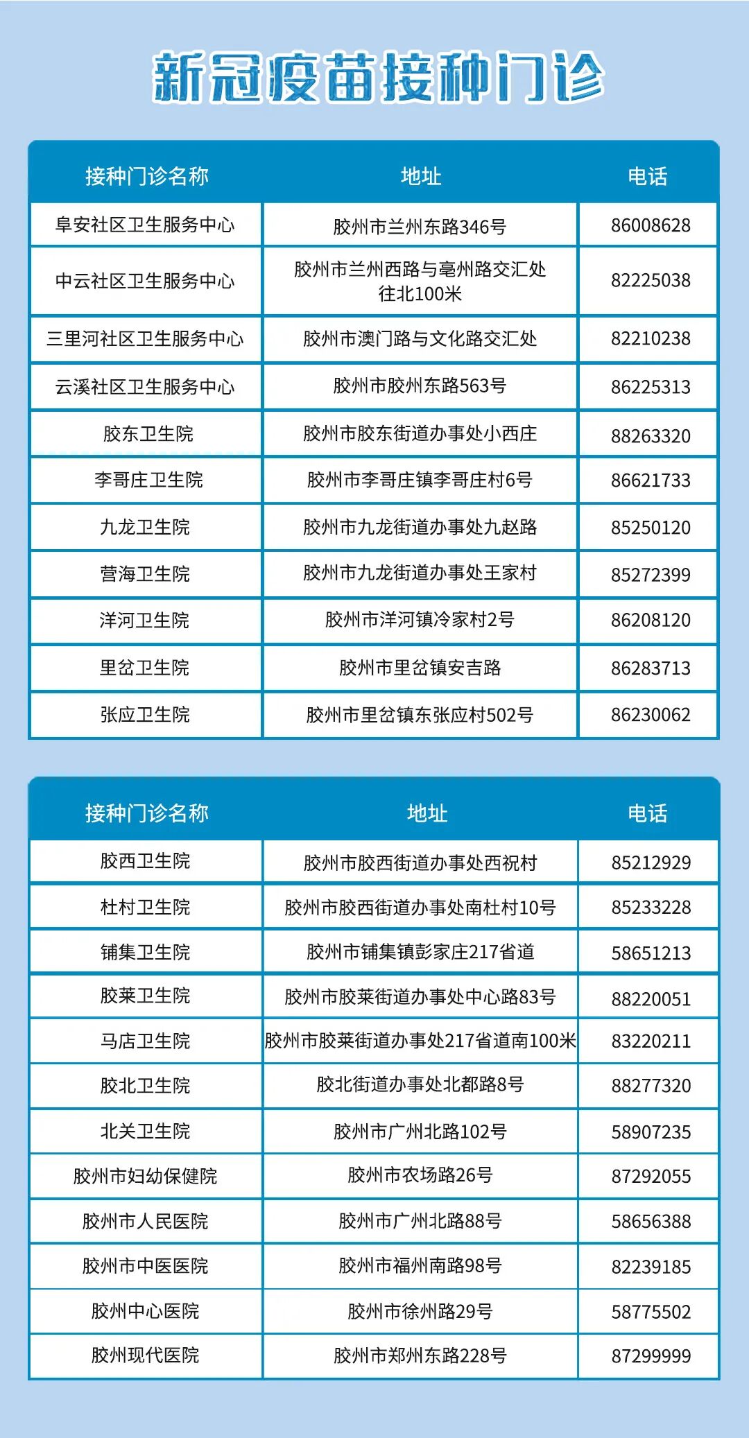 青島西海岸新區新冠病毒疫苗接種點信息公示(排名不分先后,截止2021年3月25日)