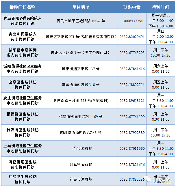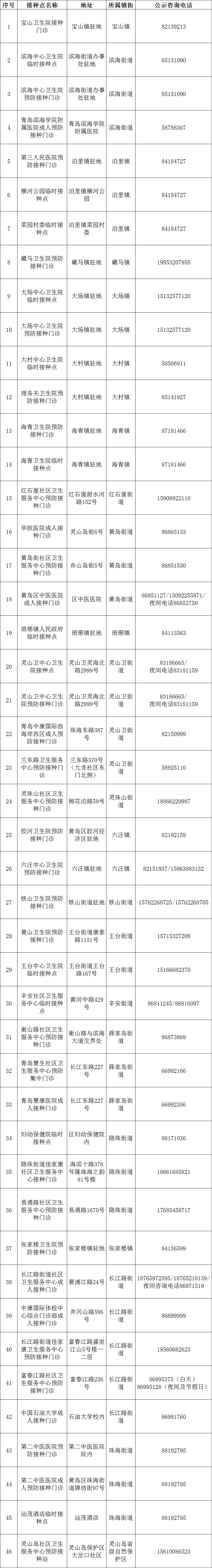 嶗山區新冠疫苗接種點各街道對外公開聯系方式