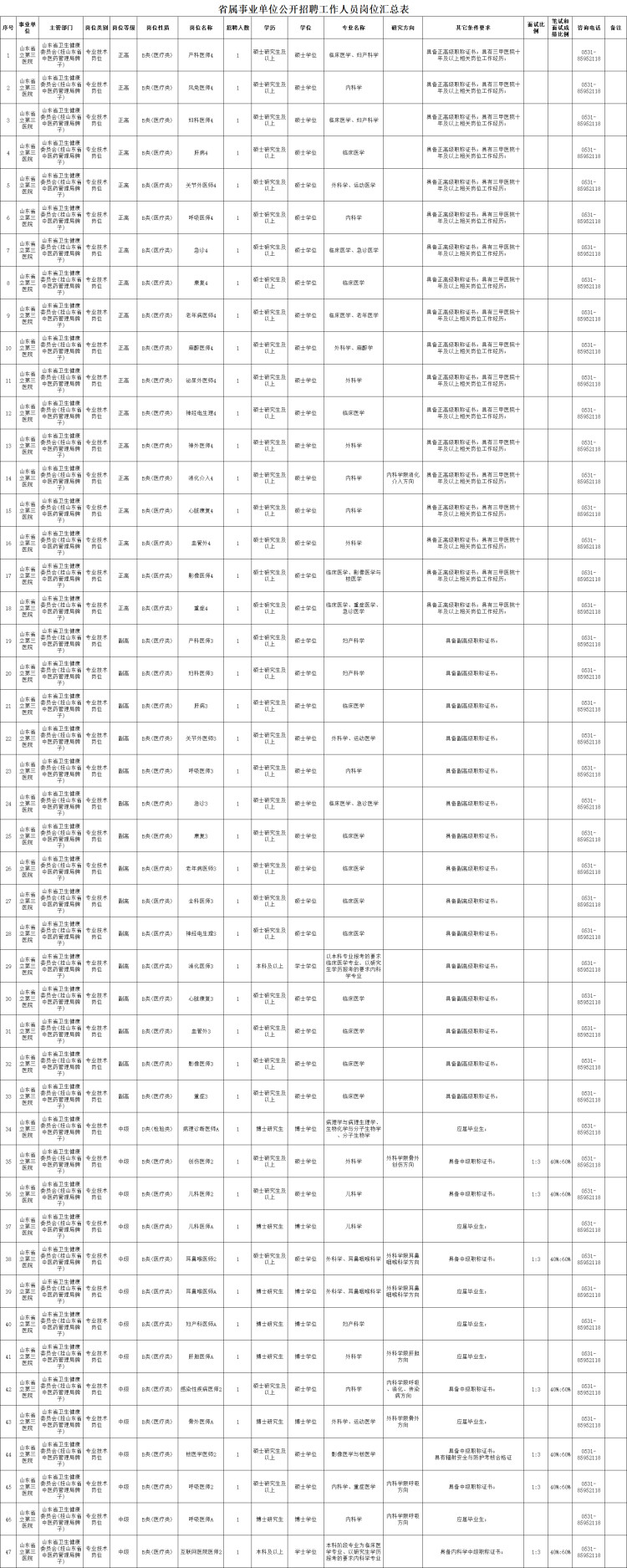 根據(jù)省委組織部、省人力資源和社會(huì)保障廳《關(guān)于做好2021年事業(yè)單位公開招聘工作人員有關(guān)問題的通知》要求,結(jié)合工作需要,山東省衛(wèi)生健康委所屬山東省立第三醫(yī)院擬面向社會(huì)公開招聘工作人員210人,均為專業(yè)技術(shù)崗位。其中,高級(jí)崗位33人,中級(jí)崗位66人,初級(jí)崗位111人。
