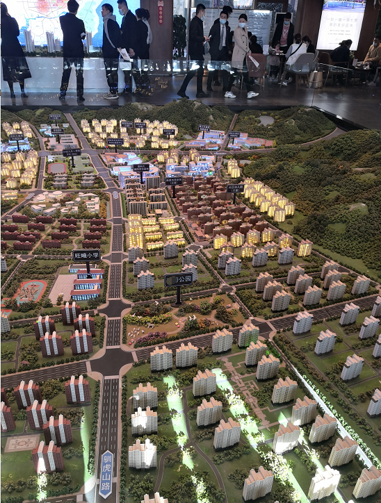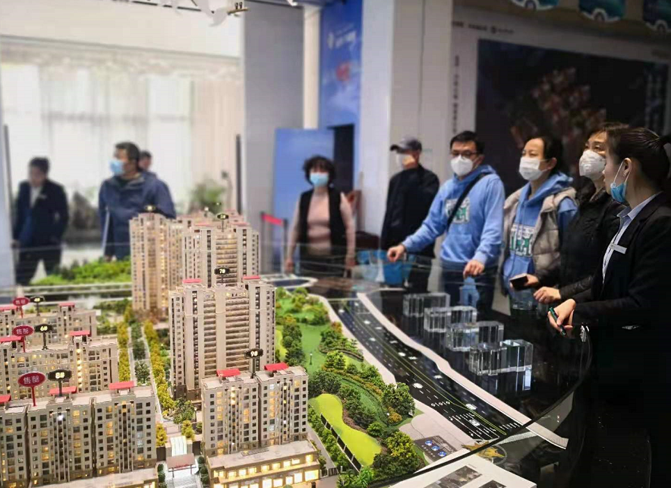 市北區遠洋萬和城售樓處,消費者正在看盤。李鵬飛 攝