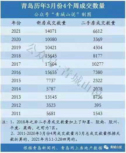 對于前4個周的數據,也有業內人士認為,現在的青島樓市,正處于回暖階段,但與大漲、暴漲還不可同日而語。“青城山說”分析指出:2021年3月份4個周新房、二手房成交量,超過了2020年、2019年、2015年、2014年、2012年、2011年的淡季年份,與2018年、2017年、2016年、2013年的旺季年份還有不少的差距。