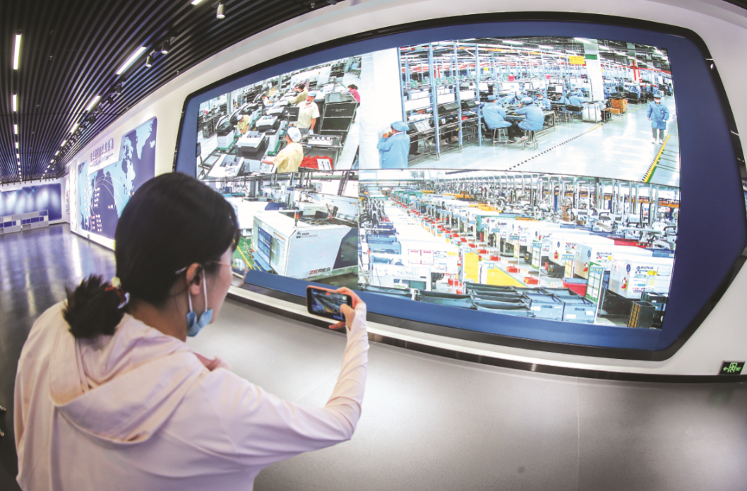 線上“零距離”走近激光打印機(jī)生產(chǎn)線。 青島日?qǐng)?bào)記者 柳棟攝