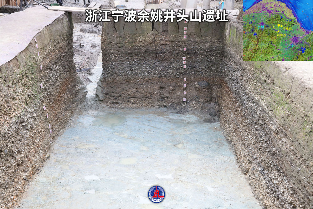 浙江寧波余姚井頭山遺址位于浙江省余姚市三七市鎮,總面積20000平方米,是中國沿海埋藏最深、年代最早的海岸貝丘遺址。