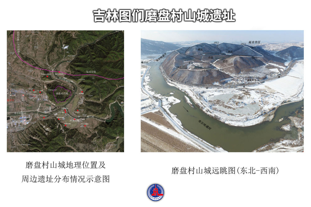 吉林圖們磨盤村山城遺址,坐落于吉林省延邊朝鮮族自治州圖們市,該城南高北低,城墻沿山脊、山腹修筑,平面呈闊葉狀,周長4549米。考古發掘表明,該城應為東夏國時期城址。