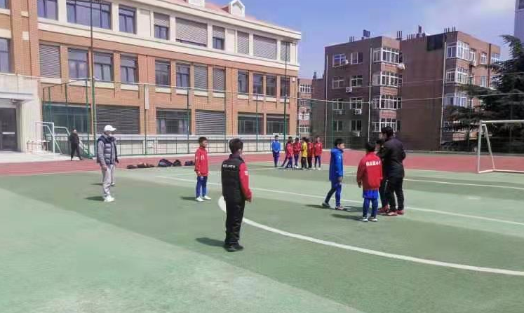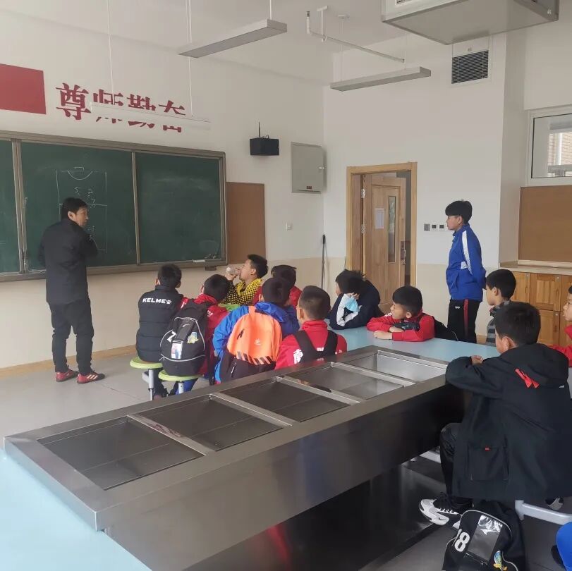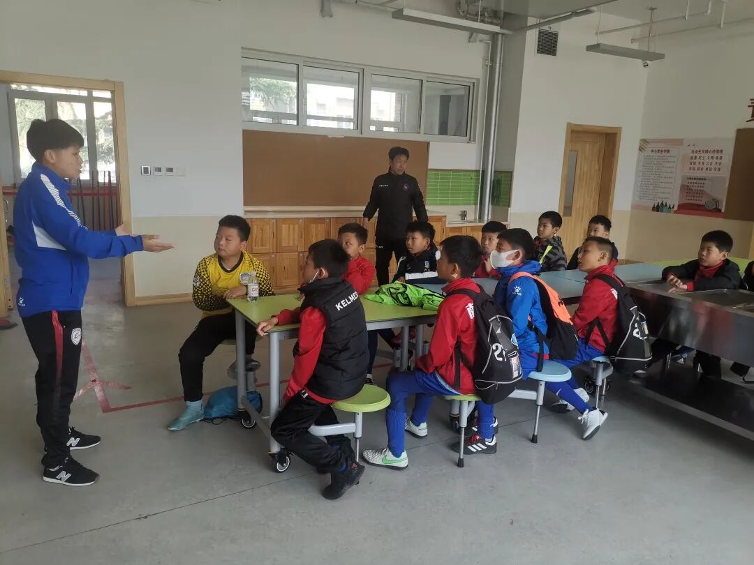 賽前,南京路小學的足球小將們提前做足了準備。比賽當天上午十一點,全體教練員、隊員集中在校內,為兩小時后即將迎來的第四輪比賽做賽前部署。下午的對手是城陽第三實驗小學,排名小組第一,實力不俗。對于這樣的對手,球隊很是重視,在部署會上,教練給隊員們分析比賽中遇到的各種情況以及對手有可能會采取的戰術,并就每位隊員的個人特點進行了有針對性的戰術布置,接下來又在操場上做了多套戰術配合的演練,以爭取最好的表現。