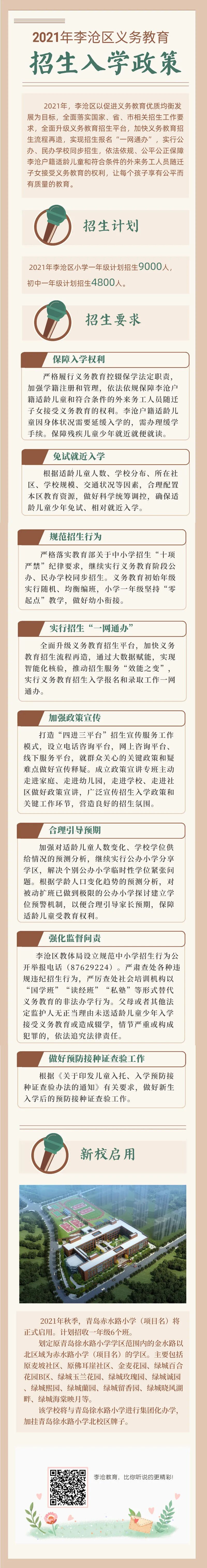 權威發布|李滄區2021年義務教育學校招生入學政策出爐!