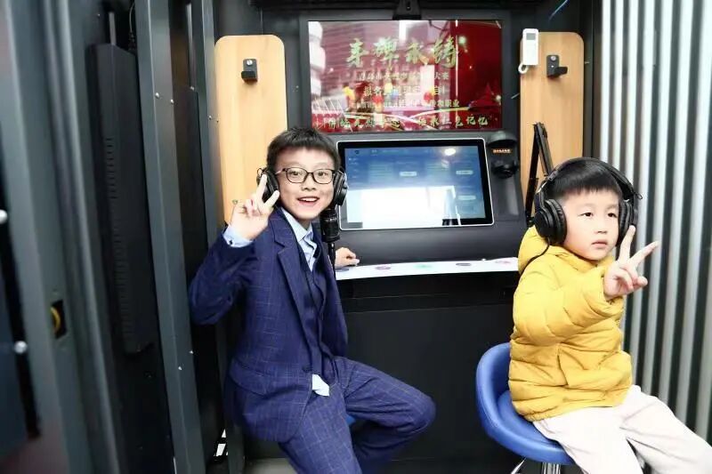 儀式結束后,與會領導、嘉賓及現場家庭陸續走進朗讀亭,誦讀《寫給青少年的黨史》,重溫中國共產黨的百年光輝歷程。