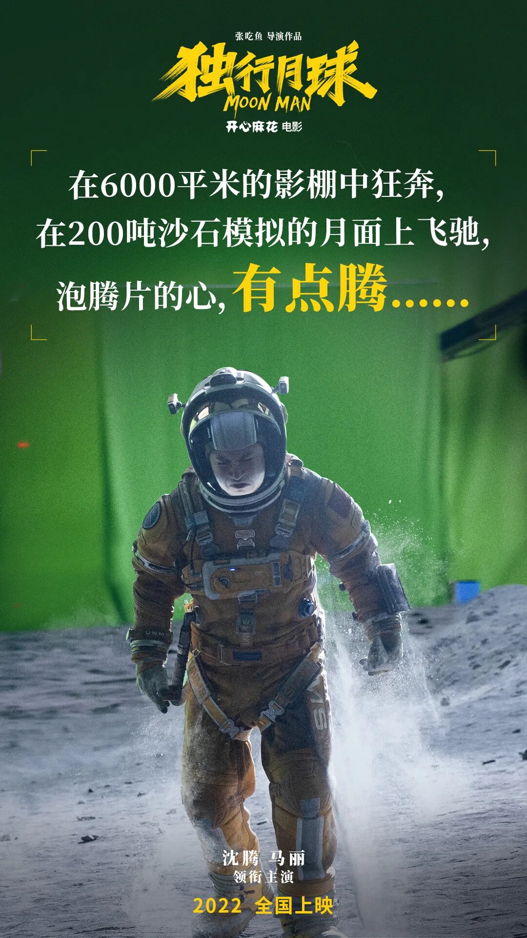 《獨行月球》與以往的開心麻花影片的風格不太一樣,是一部工業化的科幻題材喜劇。影片95%的鏡頭涉及特效,劇組投巨資實景搭建了月球基地,沈騰、馬麗需要每天穿著40斤重的宇航服演戲,為體現失重感,兩人甚至還要穿著宇航服吊威亞……