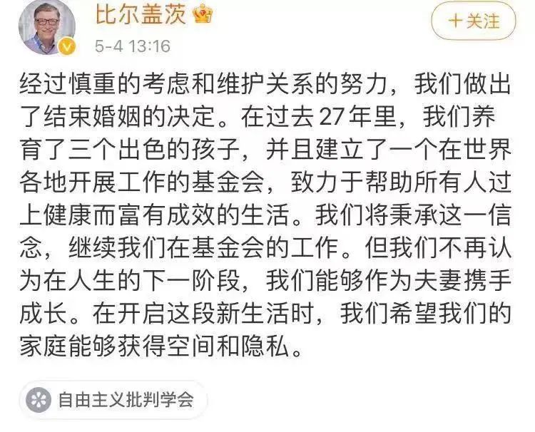 經歷婚姻的價值篩選之后,就能保證婚姻的圓滿嗎,蓋茨的婚姻告訴我們,那也不一定。