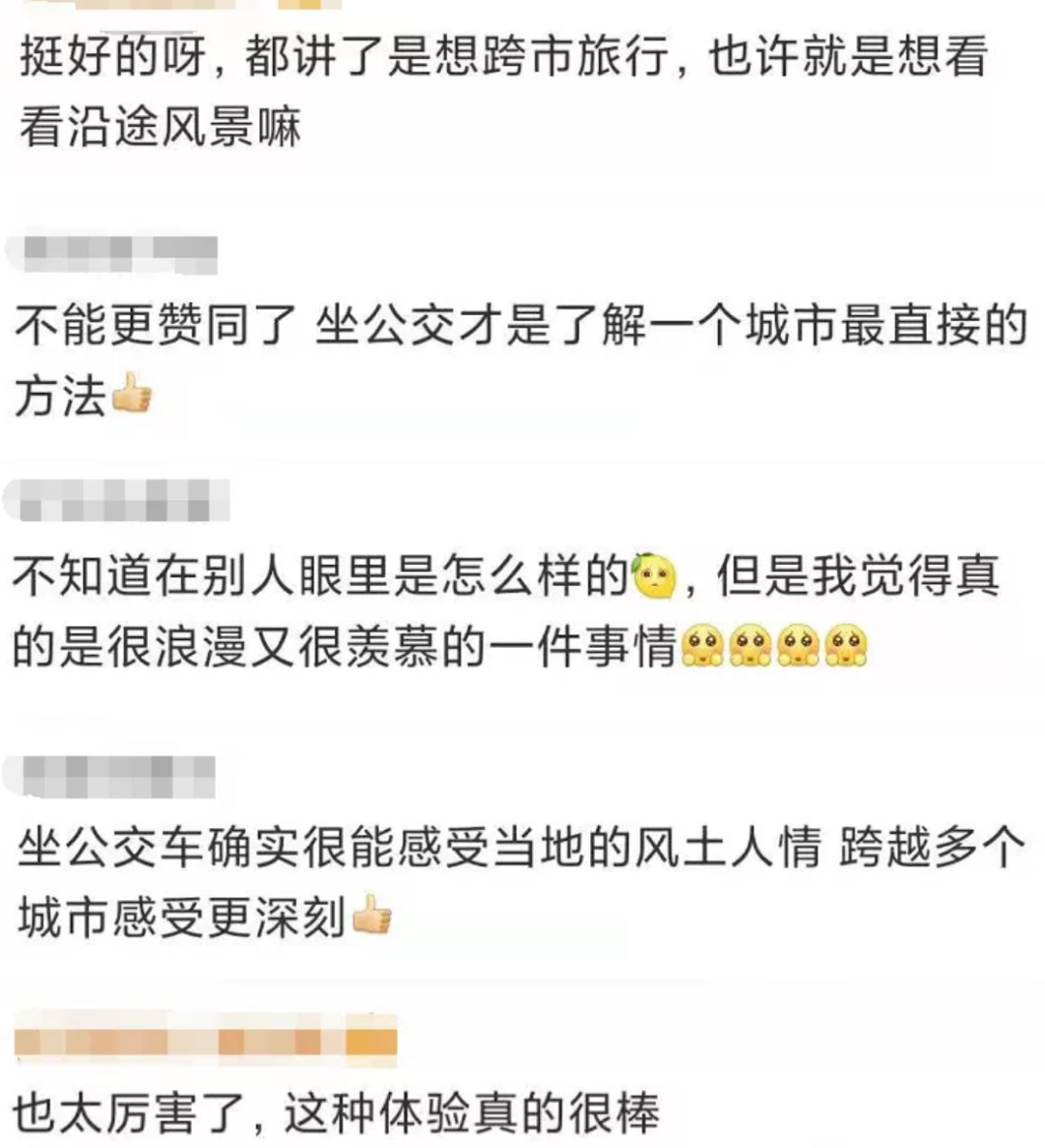 其次,公交旅行不同于打卡景點的旅行模式,它更加重視異地生活的體驗和感受。因為每到一個城市,旅行者都能聽到當時獨特的方言,看到不同城市的風景,體會當地市民的實際生活,領略不同的風土人情……這種感受是其他旅行方式所無法比擬的。難怪小唐同學說:“通過坐公交車旅行,能夠感受到各地方言和人文的魅力,會很直觀地體會到我們國家到底有多大。這種感覺很踏實。”