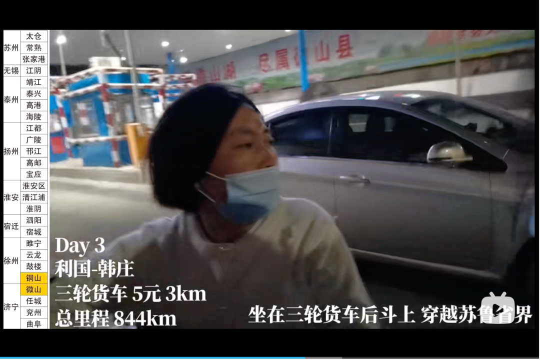 這一路上的經歷充滿意外——在蘇魯省界,公交不相連的地方,他只能改坐“火三輪”;