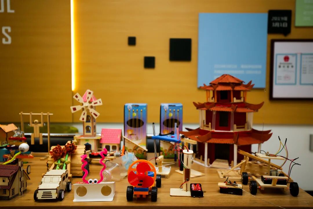 科技游園成果展中,以VR紅色研學(xué)、編程與人工智能體驗、木工制作與中國傳統(tǒng)工藝、服裝大師學(xué)生作品展示、創(chuàng)新方法學(xué)習(xí)與發(fā)明專利申請、各型機器人體驗、模型沙盤制作等科技熱點成果展示。