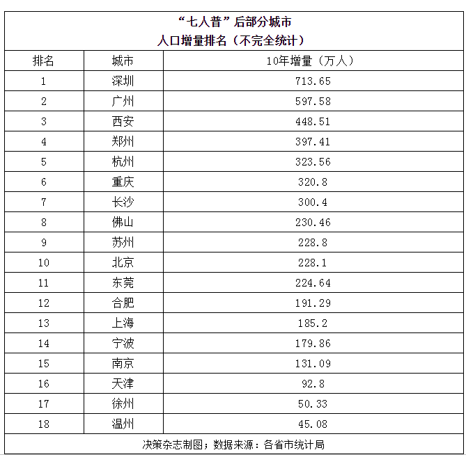 從人口增量看,近十年,部分城市的人口增量如下:深圳713.65萬人,廣州597.58萬人,西安448.51萬人,鄭州397.41萬人,杭州323.56萬人,重慶320.8萬人,長沙300.4萬人,佛山230.46萬人,蘇州228.8萬人,北京228.1萬人,東莞224.64萬人,合肥191.29萬人,上海185.2萬人,寧波179.86萬人,均高于青島。