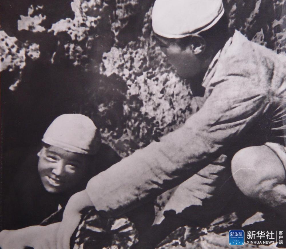 ↑和戰友一起燒炭的張思德(左)(資料照片)。新華社發