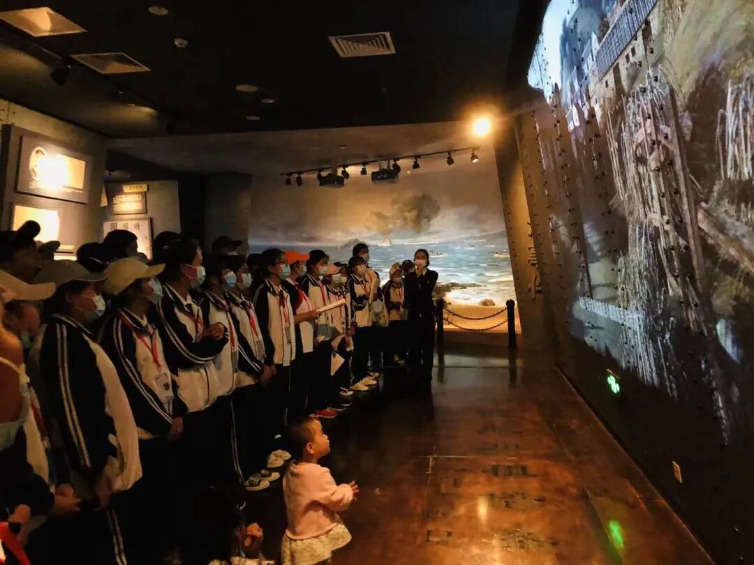 參觀結束時,同學們在講解員帶領下齊讀結束語,聲音洪亮高亢,情緒飽滿激昂。