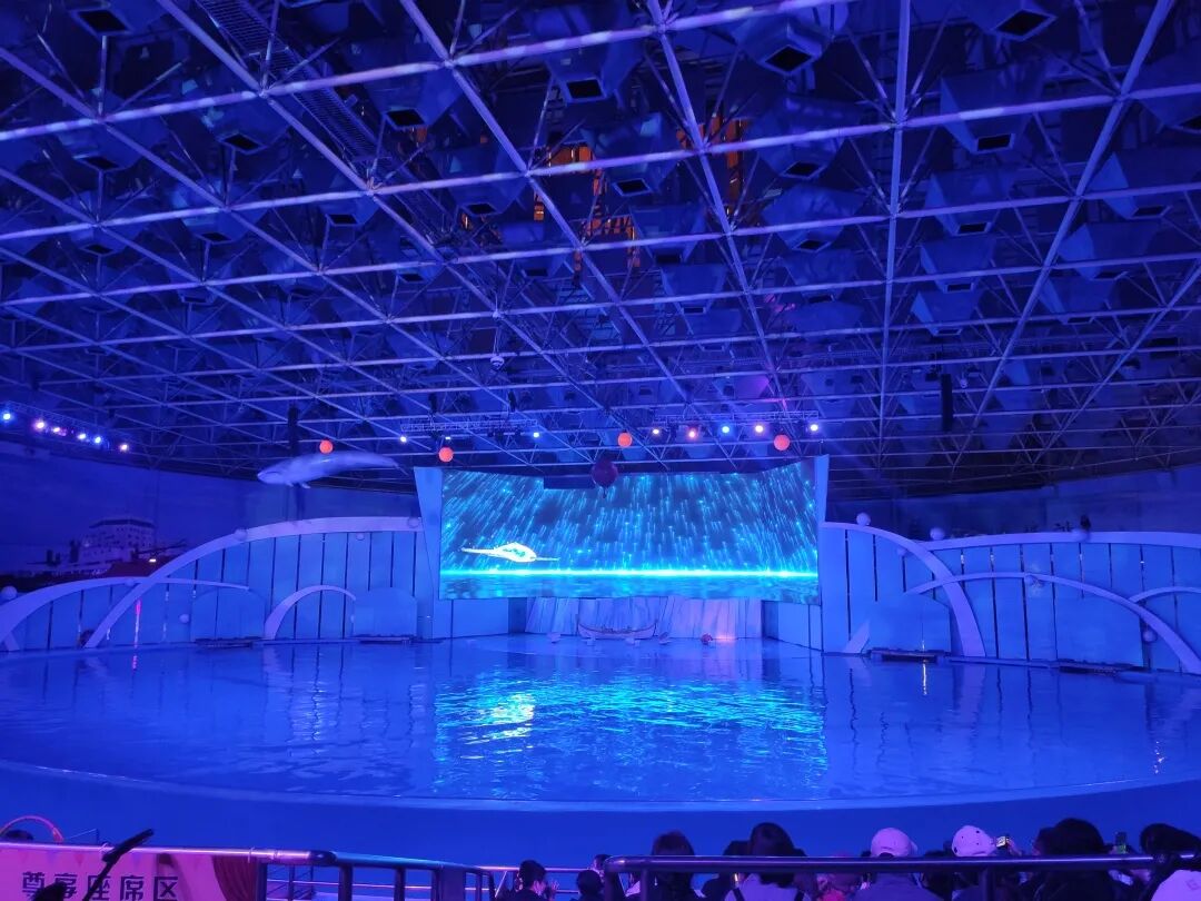 白鯨一身素裝,游動在碧藍的海水之間,騰挪輾轉,好不快活 ,令人贊嘆的是,在觀眾的熱情鼓勵下,它引吭高歌,歌聲高亢清澈,震撼全場。