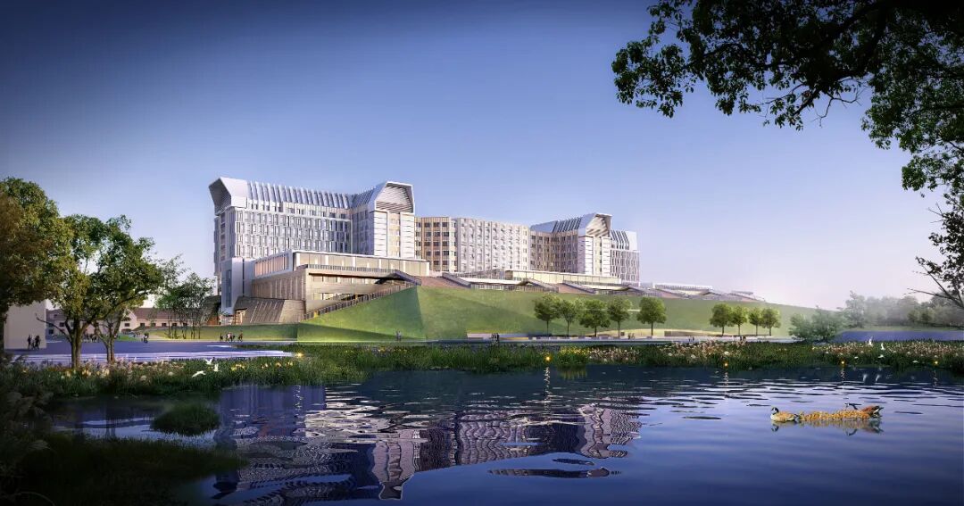 同濟(jì)大學(xué)附屬東方醫(yī)院膠州醫(yī)院是膠州市政府與上海市東方醫(yī)院戰(zhàn)略共建項(xiàng)目,位于大沽河省級(jí)生態(tài)旅游度假區(qū)。綜合醫(yī)療樓地上共10層,其中,1-4層是醫(yī)技和辦公區(qū)域,5-10層是病房區(qū)域,共規(guī)劃床位1000張,地下層布設(shè)車庫(kù)和中心供應(yīng)、核醫(yī)學(xué)、設(shè)備間和變電所等。