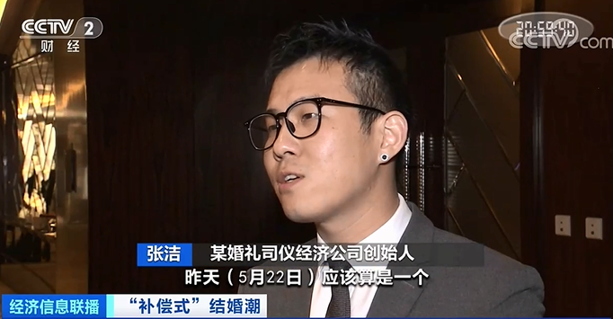 某婚禮司儀經紀公司創始人 張潔:5月22日應該算是一個全國爆單日,這一天我們總共執行了主持的場次有212場,去年我們整個團隊有150位主持人,現在我們有258個主持人,并且在各個城市,包括杭州、寧波、常州、蘇州、三亞這些城市,主持人的數量還在不斷增加。