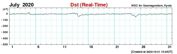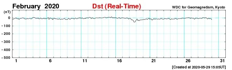 反映地磁暴發(fā)生動(dòng)態(tài)的實(shí)時(shí)Dst指數(shù)。數(shù)據(jù)來源:World Data Center for Geomagnetism