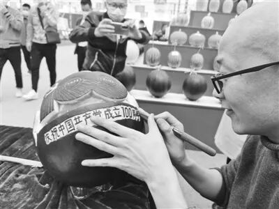 在西甜瓜科博會現(xiàn)場,昌樂瓜農(nóng)王春暉正埋頭于西瓜雕刻。在綠色的西瓜外皮上,“建黨100周年”“慶祝中國共產(chǎn)黨成立100周年”等字樣已經(jīng)雕刻成型,他用牡丹花加以點綴,使得整個造型看上去別致精巧。王春暉說,“這個西瓜重15斤,五六個小時才完成雕刻,只能保存三四天?!北M管如此,他還是想通過這種方式慶賀建黨100周年。