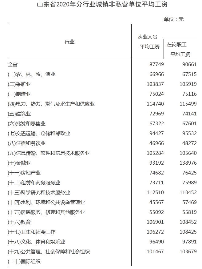6月9日,山東省統(tǒng)計(jì)局對(duì)外發(fā)布《山東省2020年分行業(yè)城鎮(zhèn)非私營單位、國有經(jīng)濟(jì)單位平均工資》。