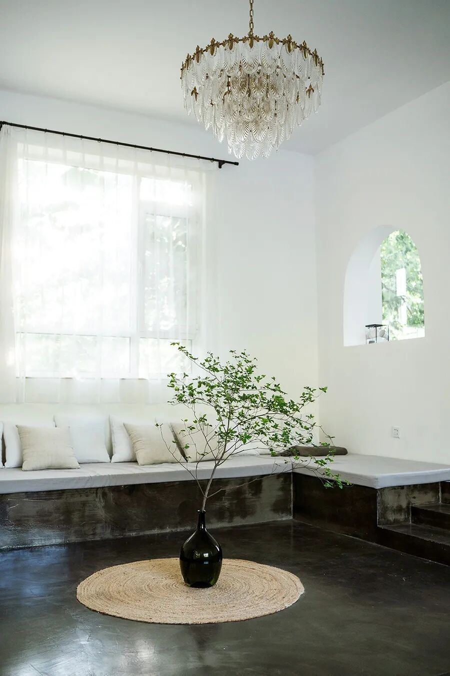 一進門,袁方設計了一處下沉會客廳,客人和朋友來了可以在此喝茶聊天、分享生活趣事。