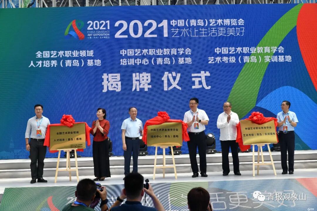 在今天舉行的開幕式上,中國藝術職業教育學會培訓中心(青島)基地、中國藝術職業教育學會藝術考級(青島)實訓基地、全國藝術職業領域人才培養(青島)基地三個“國字號”美育基地揭牌。第一批培訓,已借力藝博會正式開啟。
