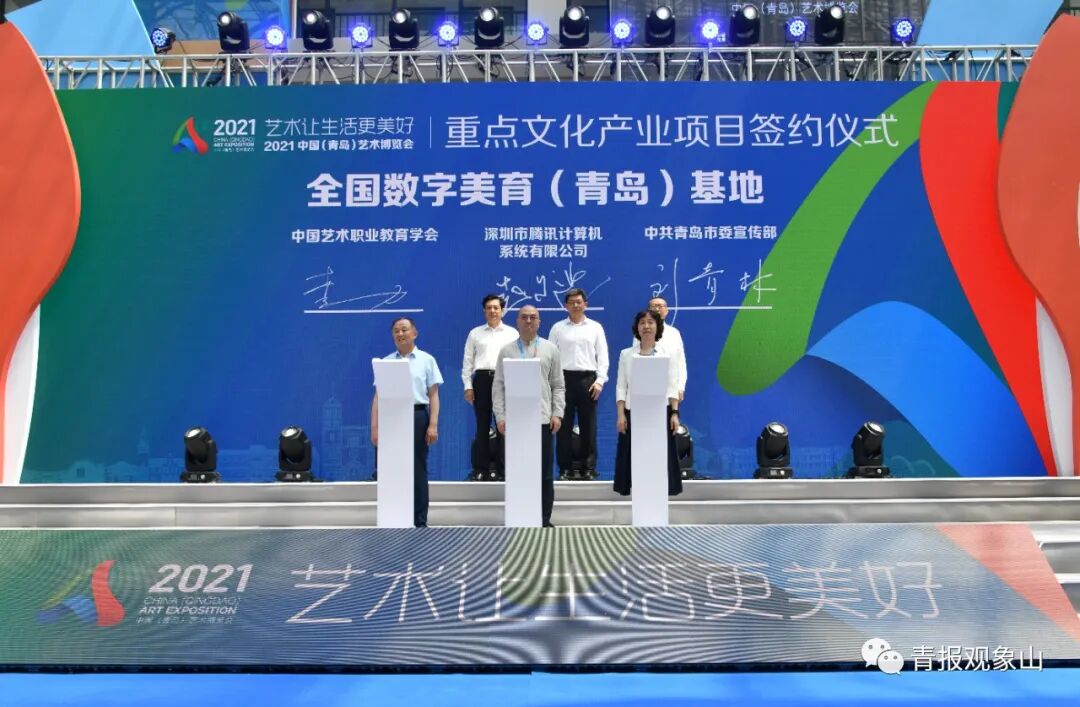 在今天的簽約環節中,中國藝術職業教育學會、深圳市騰訊計算機系統有限公司、中共青島市委宣傳部共同簽約的全國數字美育(青島)基地項目尤為引人注目。該項目旨在推動藝術與科技融合發展,結合城市藝術氛圍,通過城市藝術產業和數字科技產業的多元化融合,帶動數字藝術和美育教育產業發展,引入藝術教育培訓、師資人才培養、藝術賽事活動等資源,打造產學研用一站式的智慧美育生態平臺。“騰訊特別希望通過科技來賦能藝術教育,希望把青島作為試點,形成好的樣本推向全國。”騰訊教育副總裁趙爾迪說。
