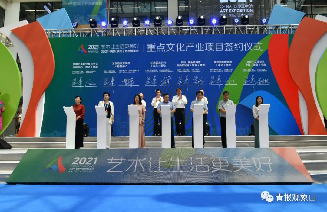與院校交朋友、與社會組織交朋友、與專家交朋友,更要與企業交朋友。本屆藝博會“雙招雙引”專場共有七個項目現場簽約,全國數字美育(青島)基地、中國藝術職業教育學會培訓中心(青島)基地、藝創港創意城市大數創中心、樂海國樂文化(青島)基地、約翰·霍金斯創意生態實驗室(青島)基地、中國國際IP影游(青島)基地、安徒生文化藝術中國(青島)中心等優質項目落戶青島,凸顯“青春之島”“創業之城”在文化藝術領域的創投吸引力。