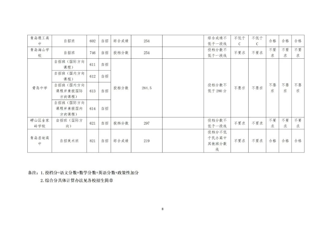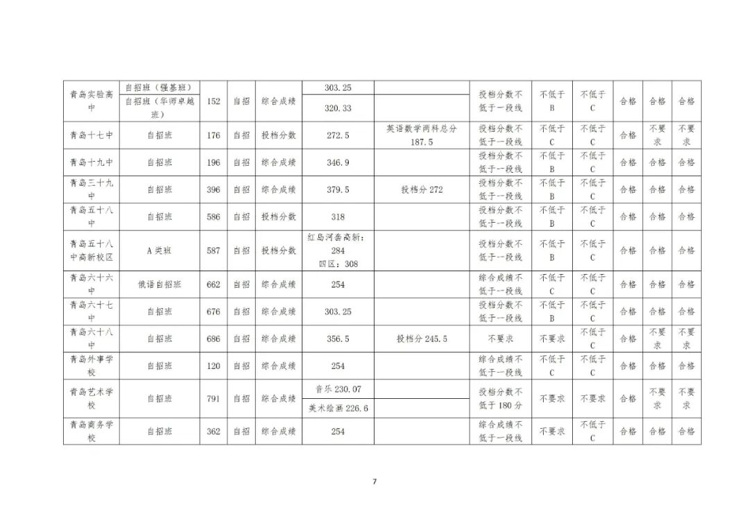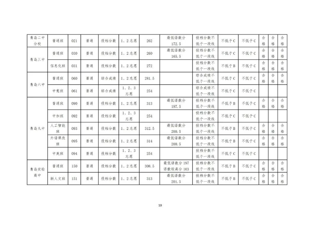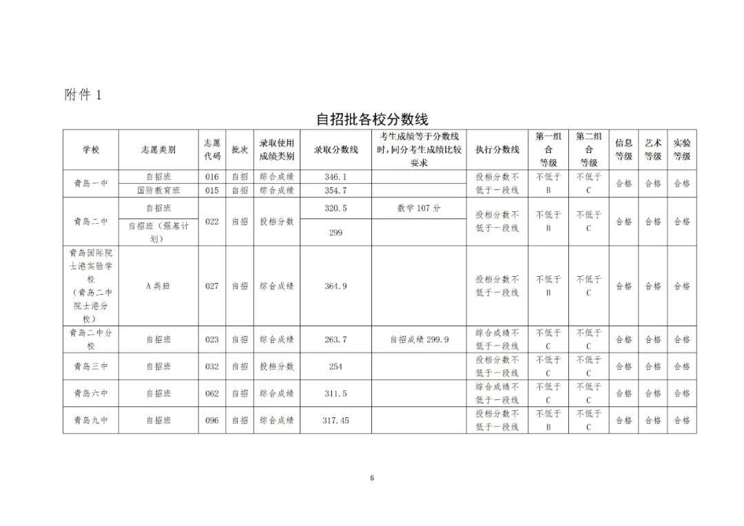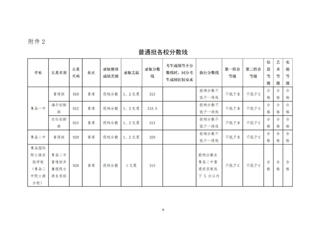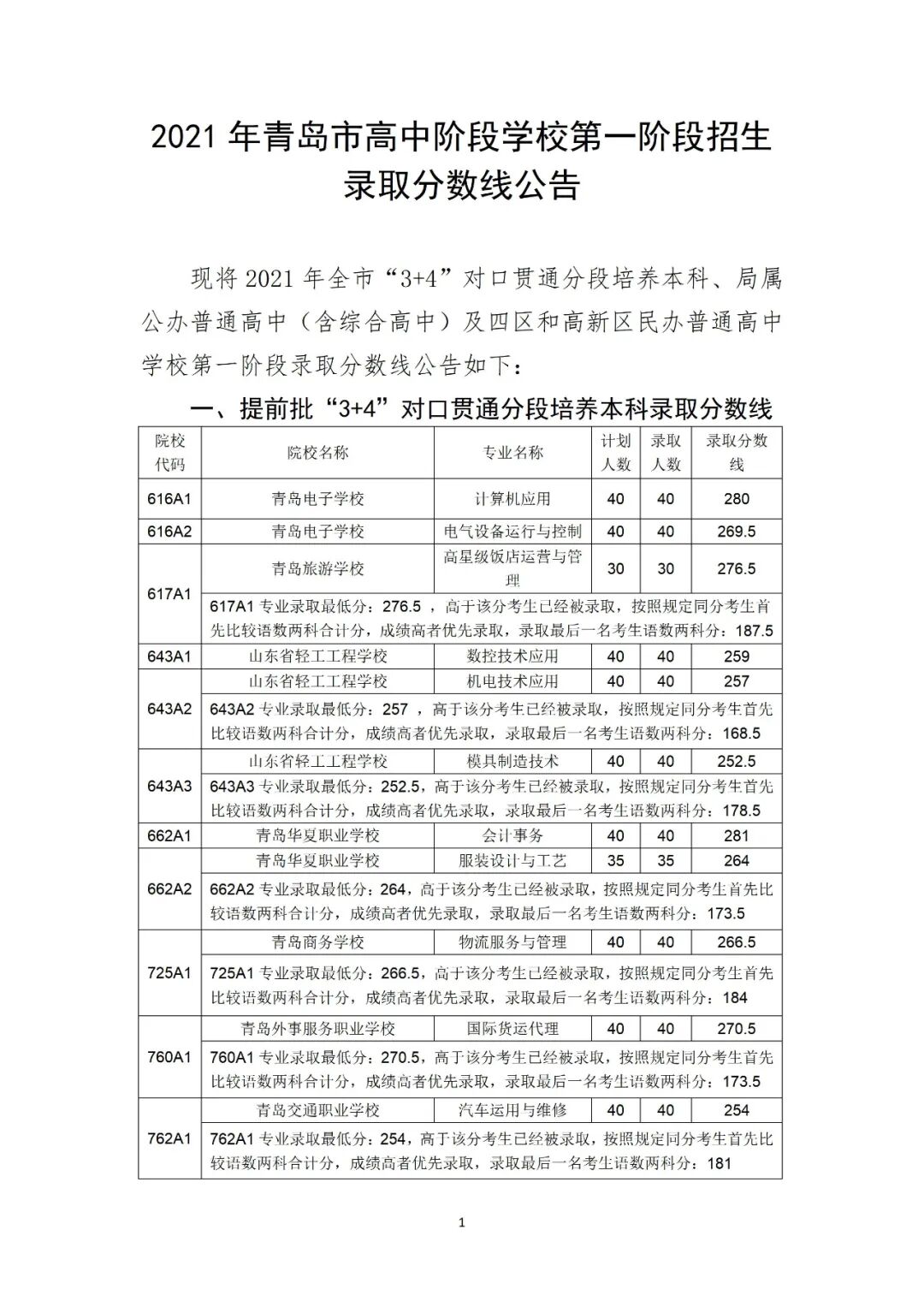 2021年青島市高中階段學校第一階段招生錄取分數線公告