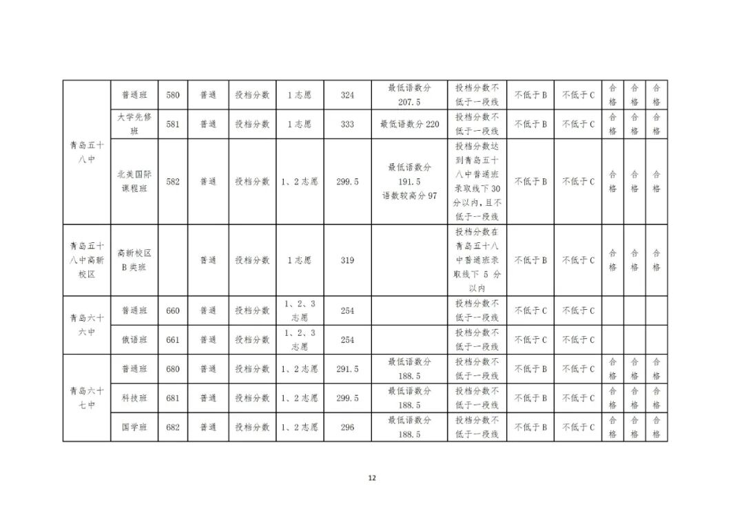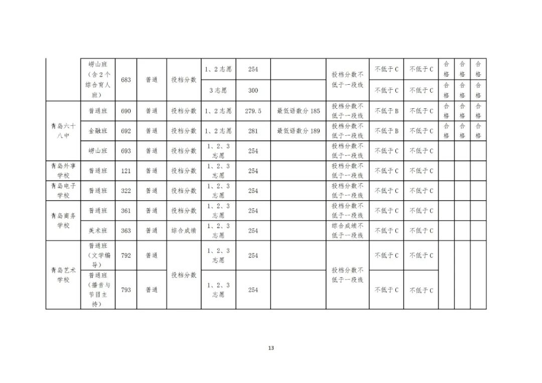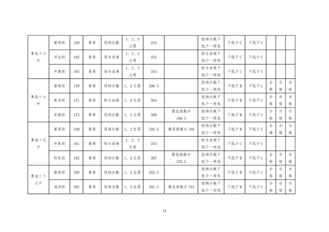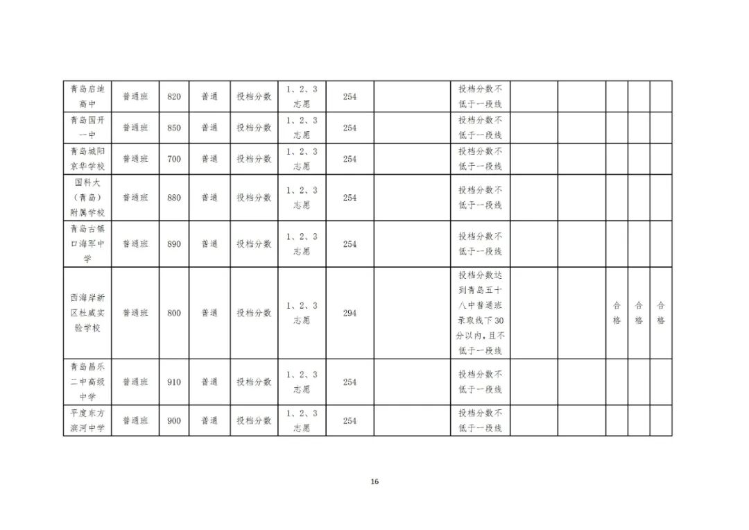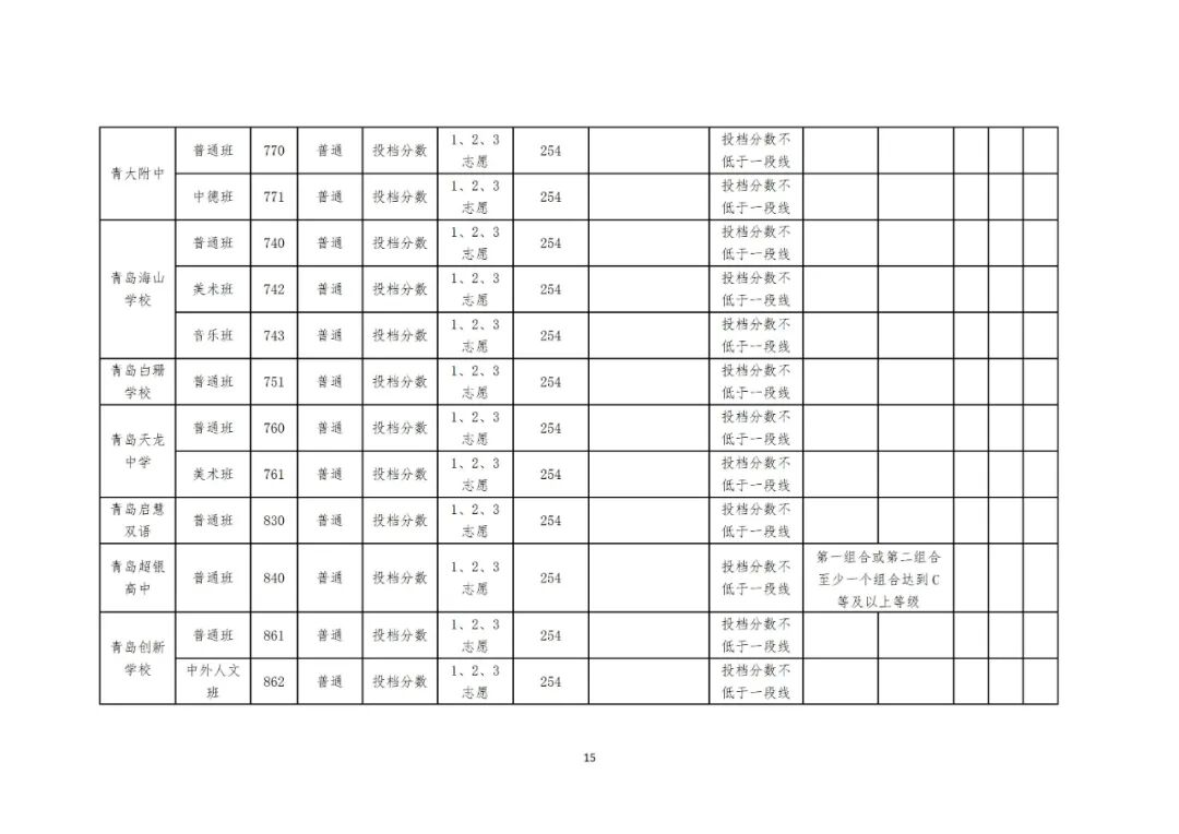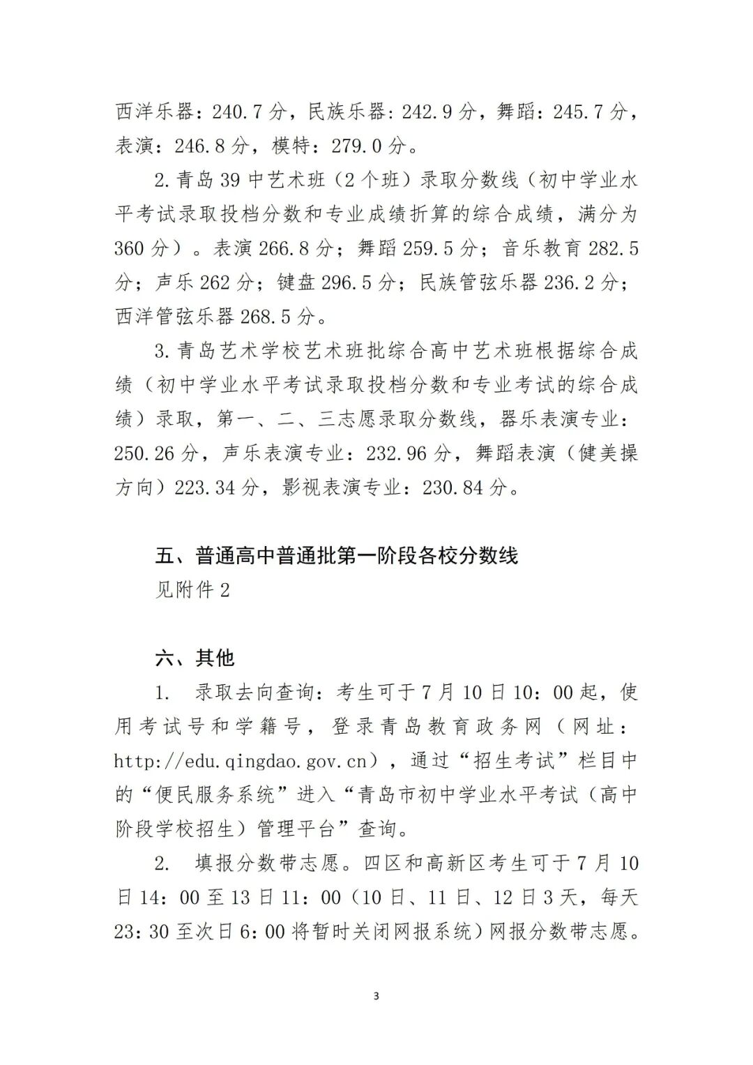 2021年青島市高中階段學校第一階段招生錄取分數線公告