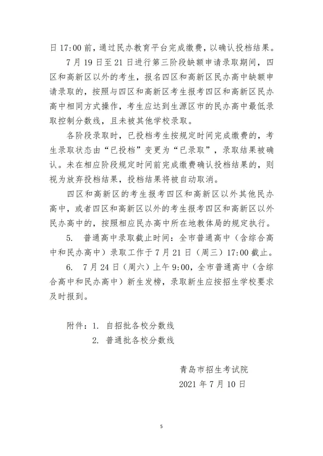 7月10日,青島市教育局將發布2021年初中學業水平考試成績。局屬公辦普高(含綜合高中)一段線為254分,局屬公辦普高(含綜合高中)二段線為220分,四區及高新區民辦普通高中普通班最低錄取控制分數線為210分,四區及高新區民辦普通高中其他班最低錄取控制分數線為190分。