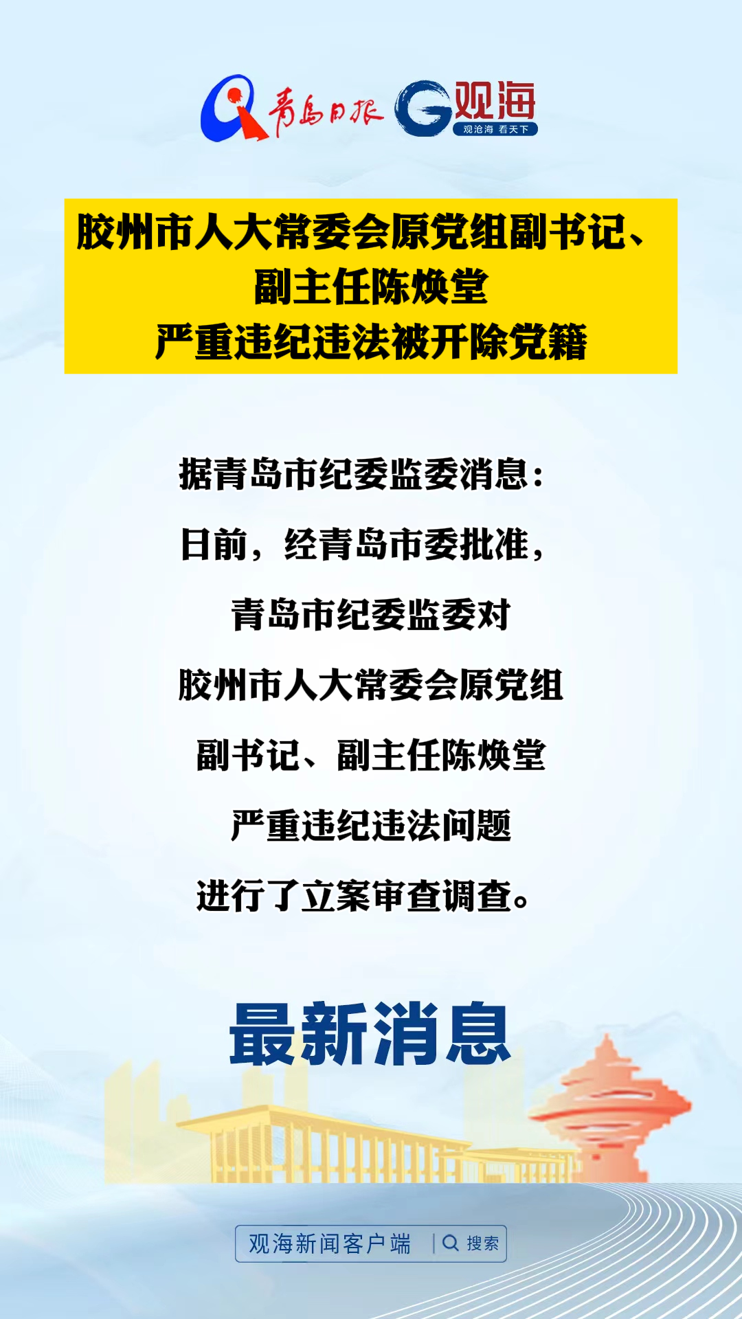 膠州市人大常委會原黨組副書記、副主任陳煥堂嚴重違紀違法被開除黨籍
