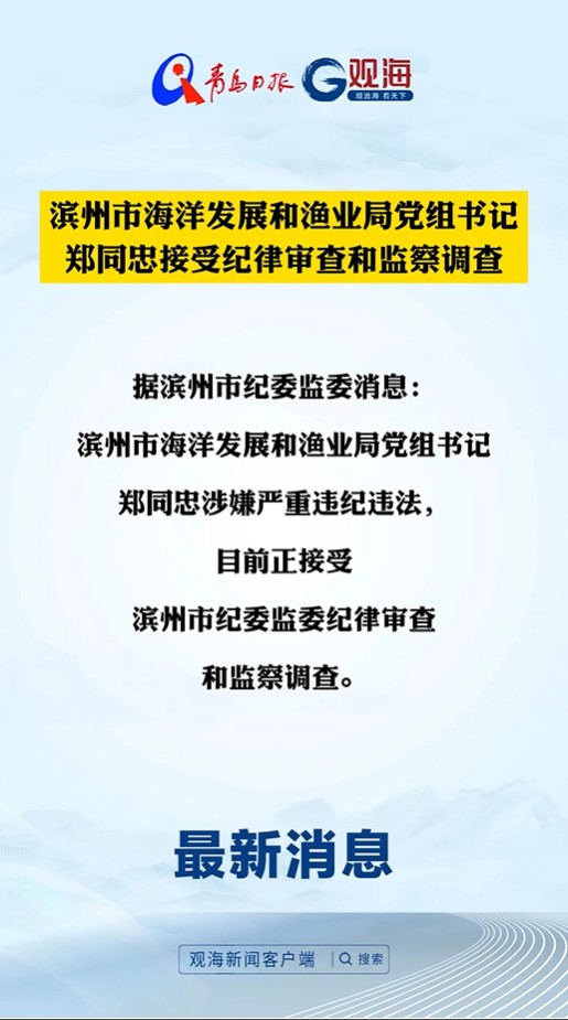 濱州市海洋發(fā)展和漁業(yè)局黨組書記鄭同忠接受紀律審查和監(jiān)察調(diào)查