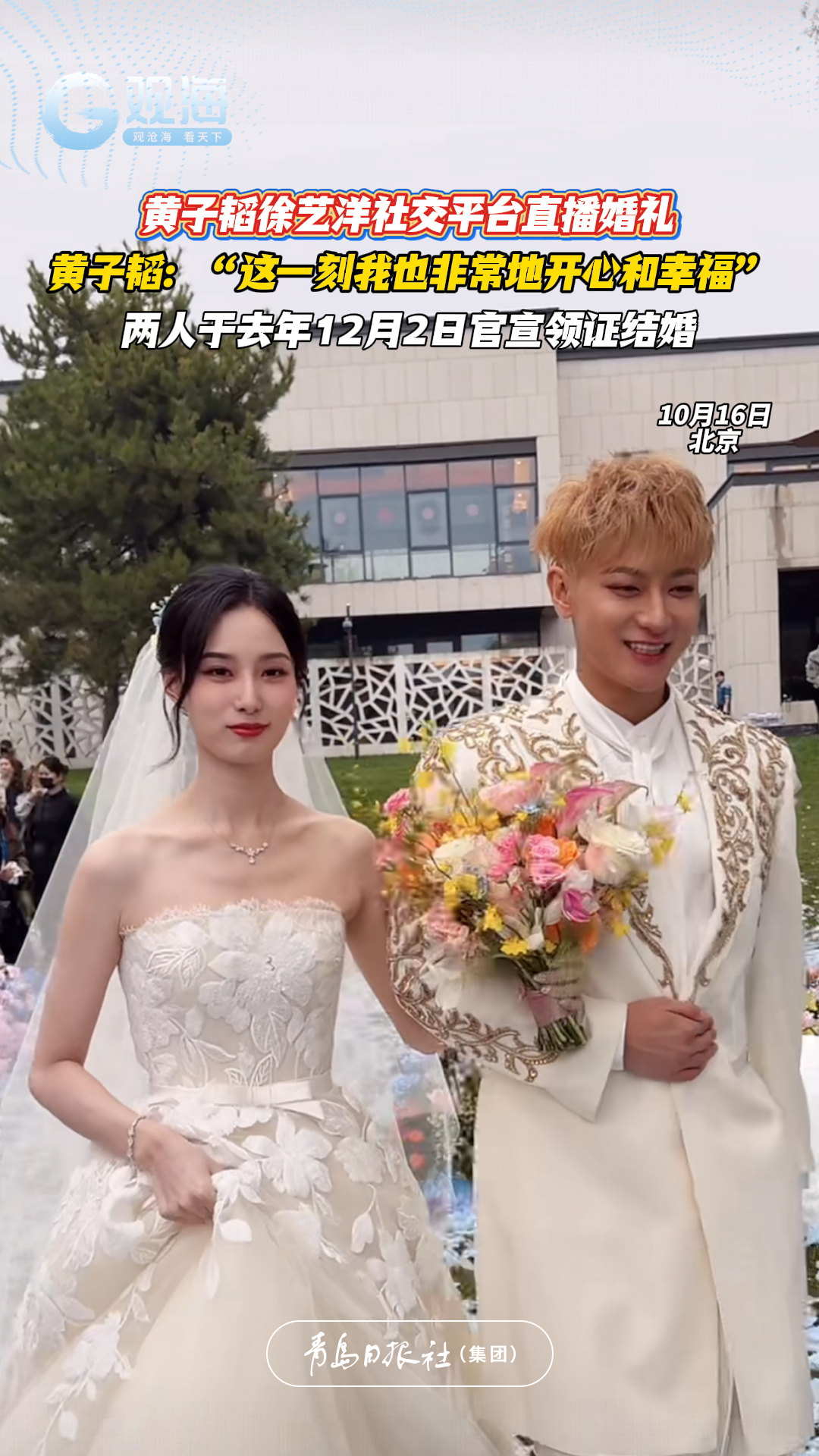 黃子韜徐藝洋社交平臺直播婚禮,黃子韜:“這一刻我也非常地開心和幸福”,兩人于去年12月2日官宣領證結(jié)婚