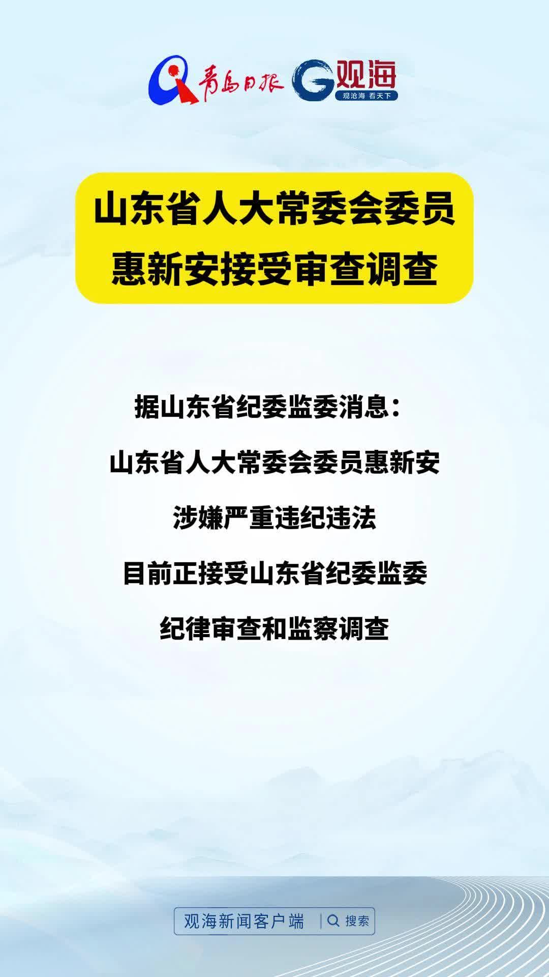 山東省人大常委會委員惠新安接受審查調(diào)查