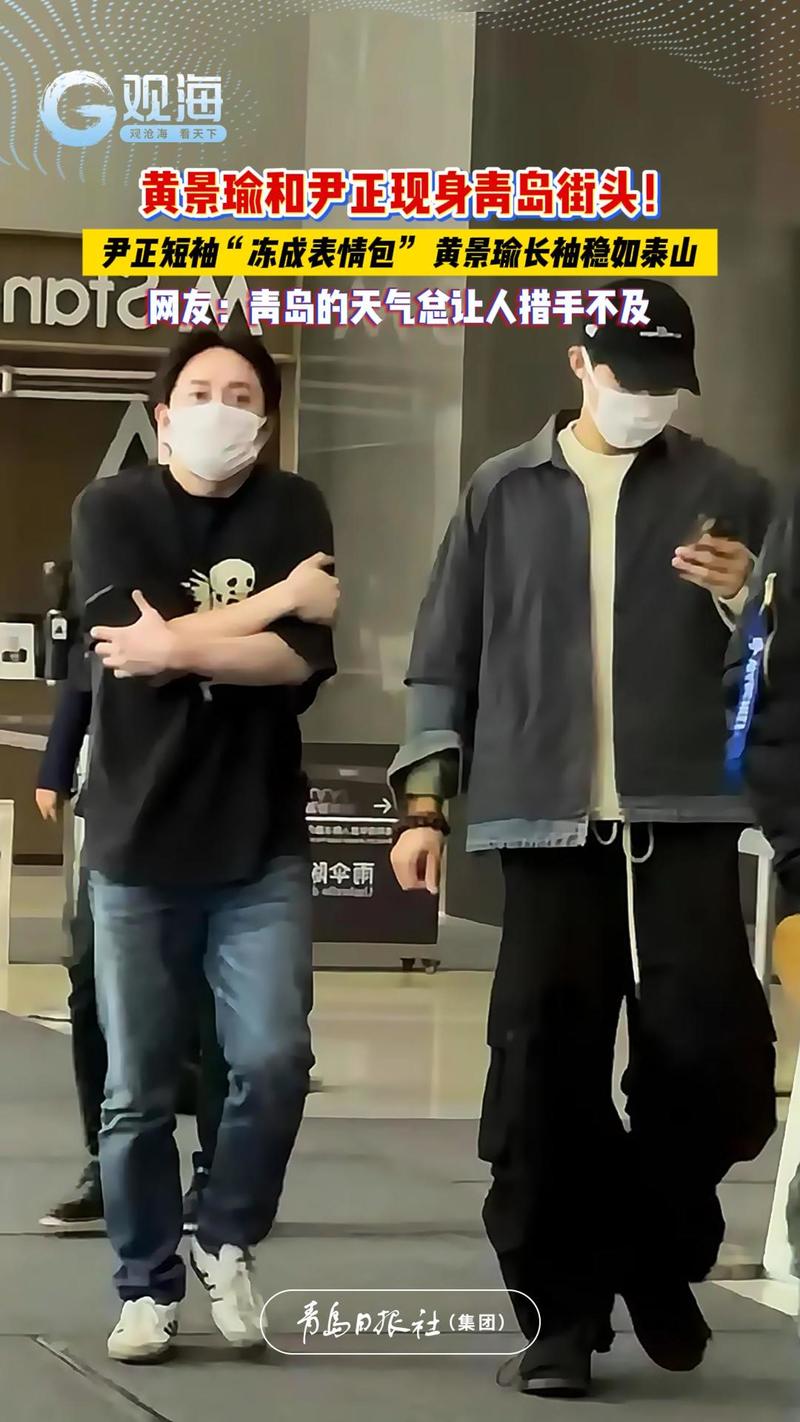 黃景瑜、尹正青島街頭同框,衣著“夏冬分明”!尹正凍出表情包