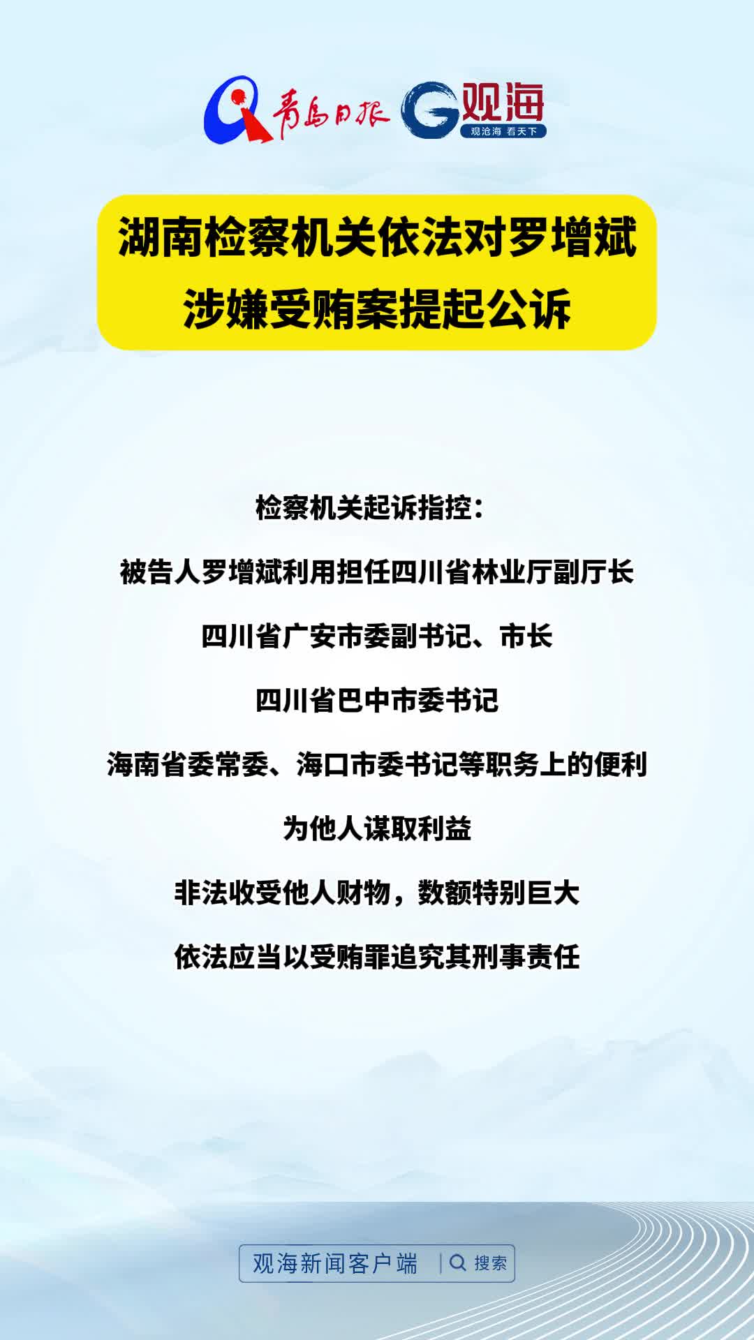 湖南檢察機關依法對羅增斌涉嫌受賄案提起公訴